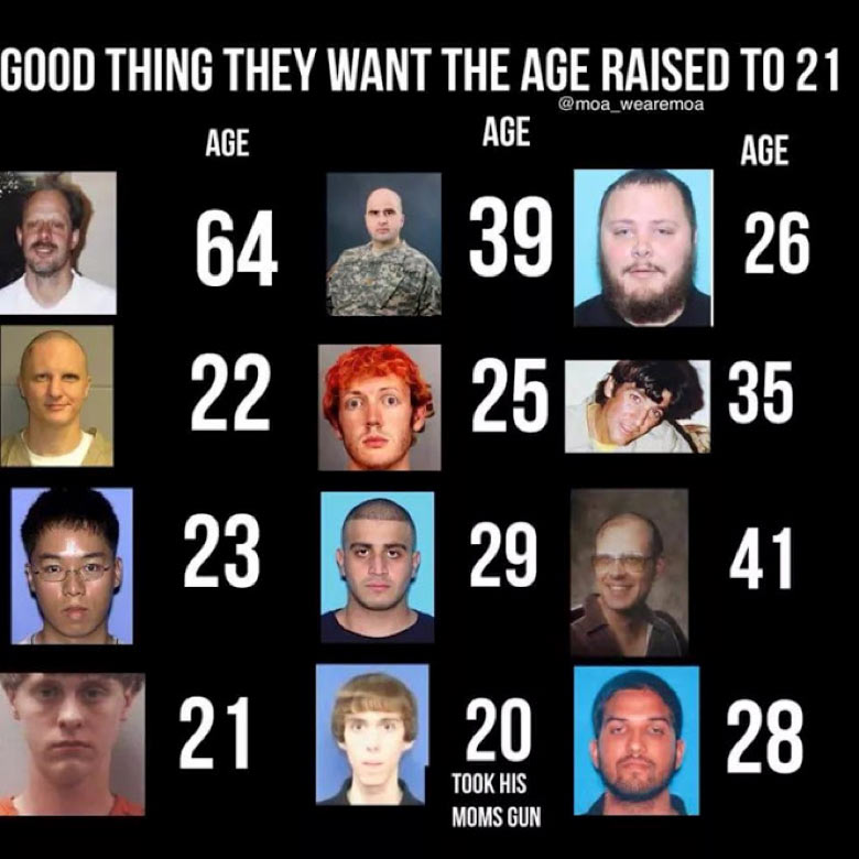 One of their purported goals is to raise the legal age to purchase a gun to 21. Check out this graphic and reflect on the logic of this.