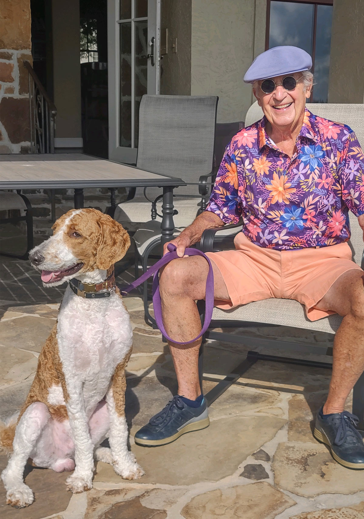Recently a buddy, (Jack Parker), sent me a photo of himself and his new baby, (his dog). He is now 93 years old. His wife passed away several years ago from Alzheimer’s and he has been a bachelor ever since. So, the other day he went down to the DMV to take care of some business and as usual, it was packed. He took a seat at a table and across from him was a lady whom he described as a very young and pretty lady. He engaged in talking with her, and they hit it off right away. The DMV lady called his name, and he quickly gave her one of his business cards for his golf vacation business, (yes, he still owns and manages a business) before going to the counter.